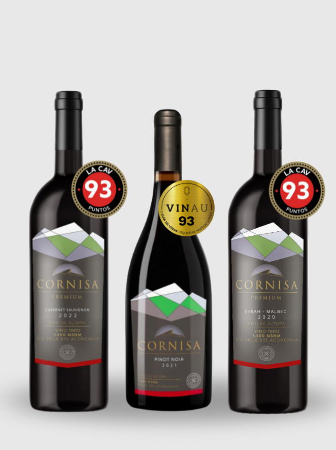 Considera un Cornisa Cabernet Sauvignon 2022, un Cornisa Syrah-Malbec 2020, que obtuvo 93 puntos en la Revista La Cav 2022 y un Sypor-T Vintage, también premiado con medalla de Oro en el Concurso Catad'Or año 2021 y 94 puntos en la Revista La Cav 2022.